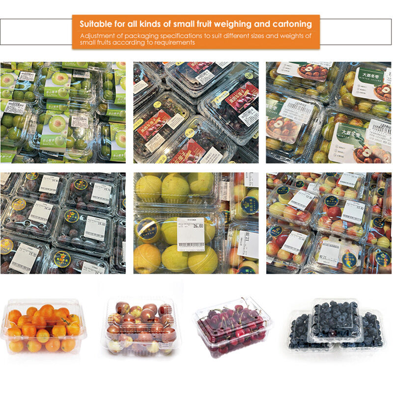 हमारीस्वचालित फल क्लैमशेल वजन और पैकेजिंग लाइनविशेष रूप से छोटे फलों जैसे ब्लूबेरी, अंगूर, चेरी, स्ट्रॉबेरी, खजूर और मिश्रित फलको उच्च सटीकता और कोमल हैंडलिंग के साथ पीईटी क्लैमशेल कंटेनरों में पैक करने के लिए डिज़ाइन किया गया है।